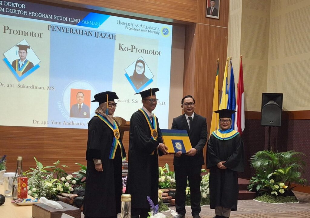 Pada sesi ujian terbuka, ia menjawab pertanyaan dari jajaran penguji, termasuk Dekan Fakultas Farmasi Universitas Airlangga, Prof. apt. Dewi Melani, S.Si., M.Phil., PhD., yang memberikan evaluasi kritis terhadap metode dan potensi aplikasi riset tersebut. Dr. Yanu memberikan penjelasan komprehensif yang memperoleh apresiasi para penguji.