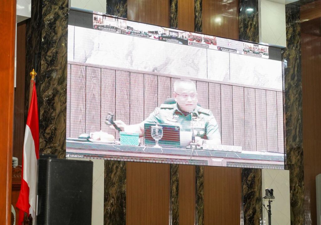 SURABAYA, Mutiara News – Pangdam V/Brawijaya, Mayjen TNI Rudy Saladin, M.A., bersama para pejabat utama Kodam mengikuti kegiatan Taklimat Awal Penyampaian Program Kerja dan Anggaran (Progjagar) Tahun Anggaran 2026 Rapim TNI AD melalui sarana video conference di Gedung Balai Prajurit Raden Wijaya, Selasa (20/01/2026).