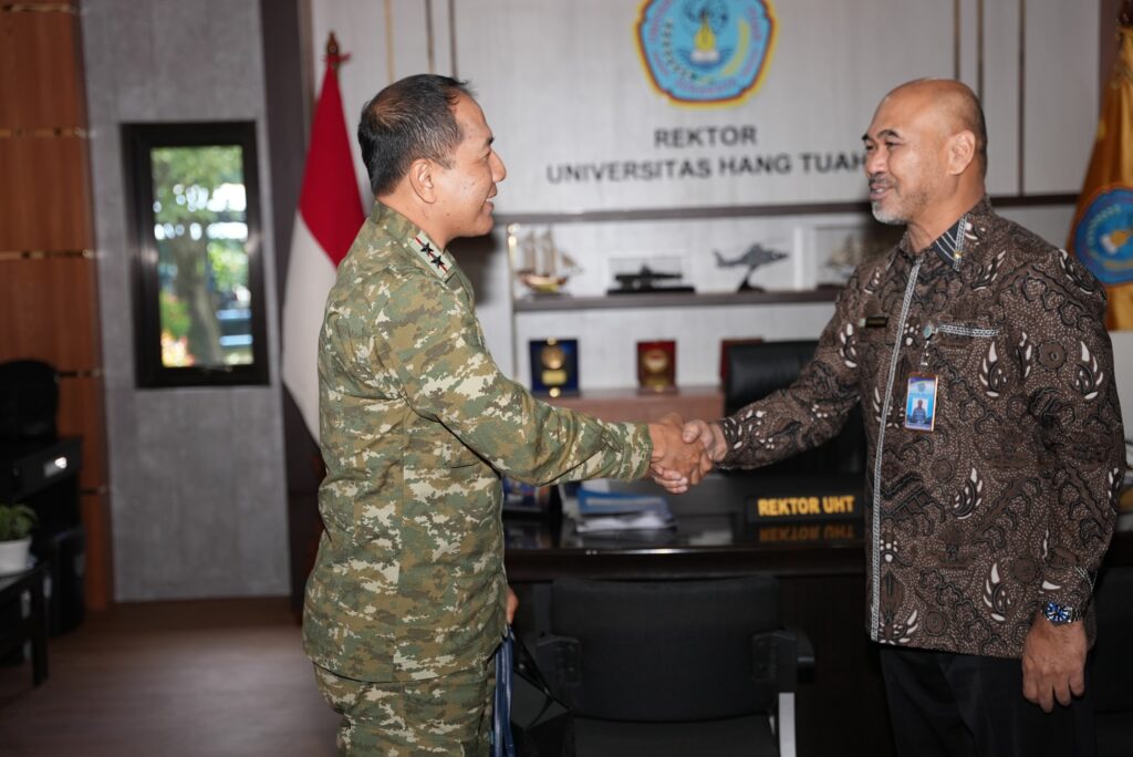 Dalam rangka memperkuat sinergi di bidang pendidikan, Panglima Koarmada II Laksda TNI I G. P. Alit Jaya, S.H., M.Si., melaksanakan kunjungan kepada Rektor Universitas Hang Tuah Laksda TNI (Purn) Dr. Ir. Avando Bastari. Kegiatan tersebut berlangsung di Rupat Rektor UHT, Gedung Enggano, Kamis (5/3), dalam suasana hangat dan penuh keakraban.