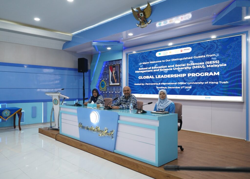 Sahabatmaritim.com – Surabaya, 2 Desember 2025 — Universitas Hang Tuah (UHT) Surabaya resmi membuka rangkaian Global Leadership Program bersama School of Social and Education Studies dari Management and Science University (MSU) Malaysia. Pembukaan berlangsung di Ruang Seminar UHT dan dipimpin oleh Rektor UHT, Laksamana Muda (Purn) Dr. Ir. Avando Bastari, M.Phil., M.Tr.Opsla., IPM., ASEAN Eng.